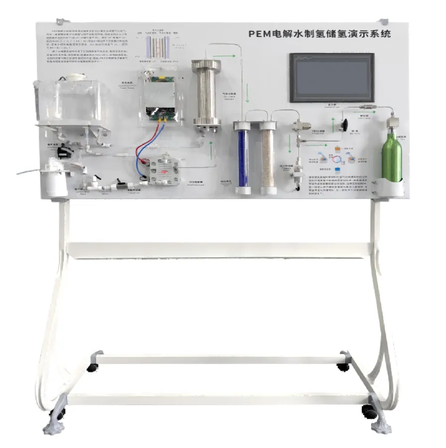 本系统是一款专为学校、科研机构设计的PEM(质子交换膜)电解水制氢储氢一体化教学演示装置,集成制氢、纯化、储氢全流程,直观展示可再生能源转化为绿氢的核心技术。系统基于PEM电解水技术原理,采用纯水电解,无碱液污染风险,安全可靠,适合实验室环境。通过模块化面板设计、可视化操作界面和实时数据监测,帮助学生深入理解氢能制备与存储的工艺流程,助力新能源、化学、工程等学科的教学与科研。