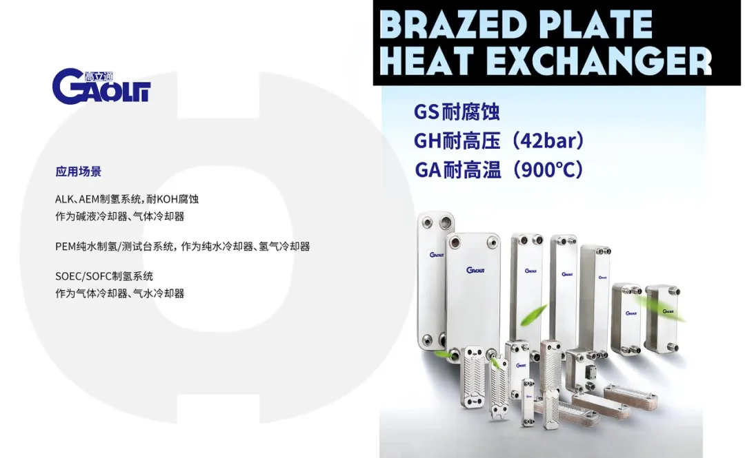 GS系列产品采用全不锈钢材质,工作压力目前最大可达到42bar。产品作为氢氧气冷却器、甲醇重整反应器、碱液冷却器、燃料电池氢气预热器